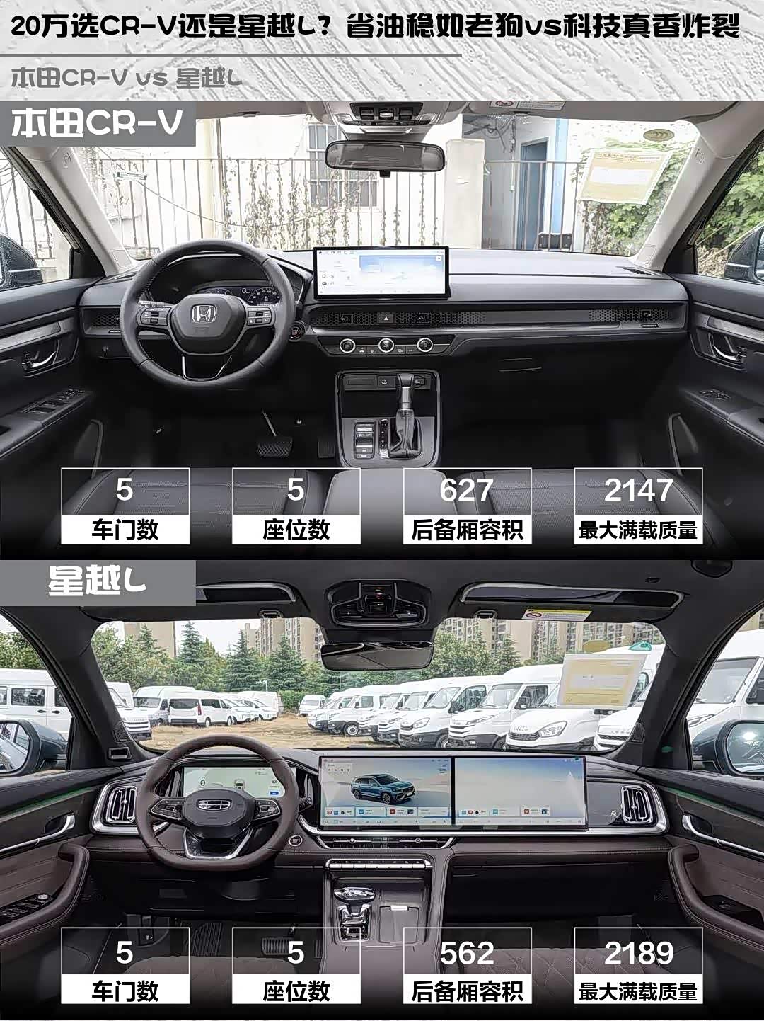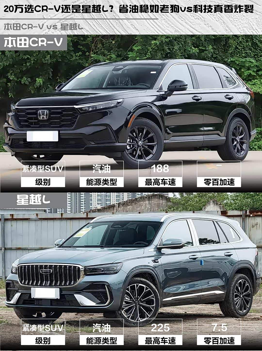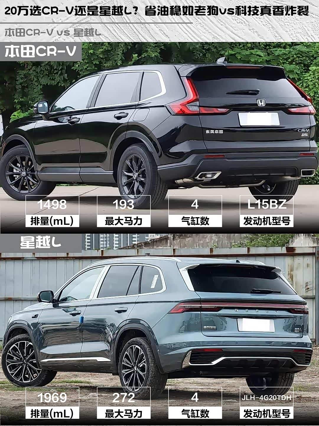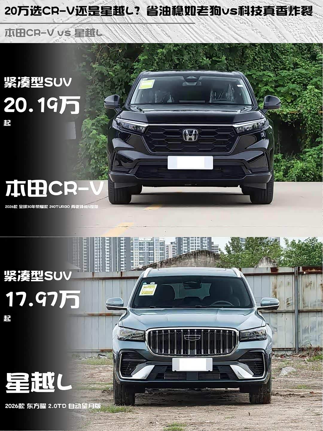 20万选CR-V还是星越L?省油稳如老狗vs科技真香炸裂