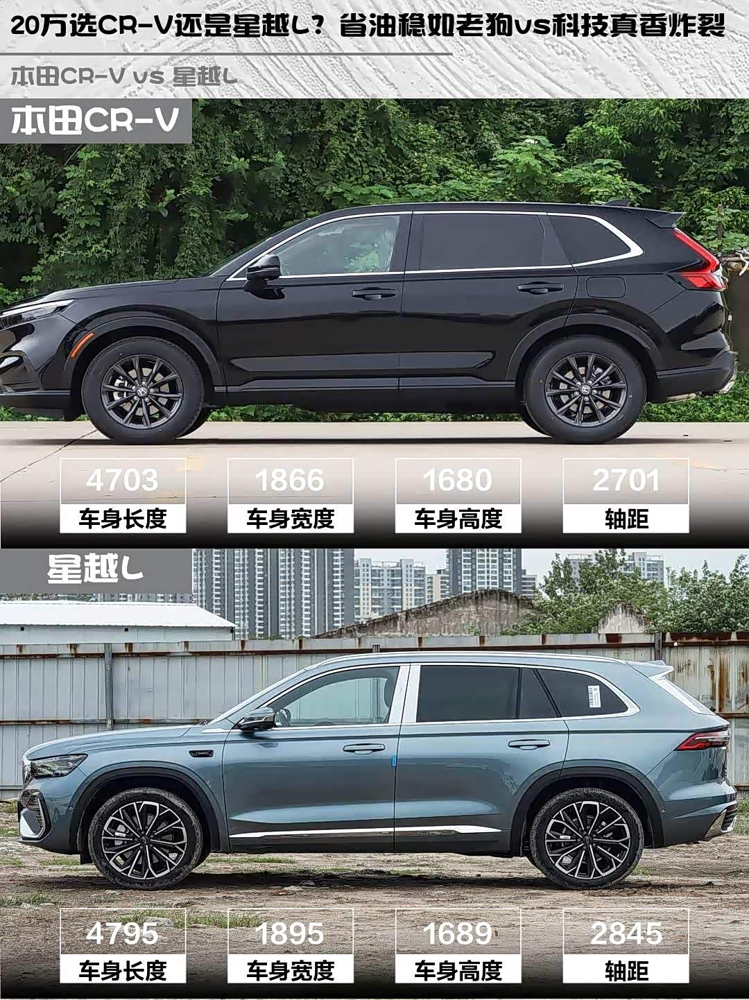最近后台好多粉丝问CR-V和 星越L(参数|询价)怎么选🤔 作为开过两款车的"老司机",今天就从真实用车场景带大家对比这两台网红SUV!(配图:两车45度角对比照)