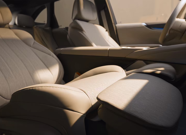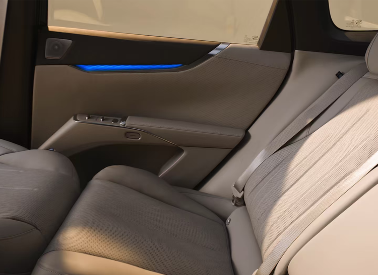 座椅方面采用了5座布局,配备四座悬浮层座椅,除了后排中间座椅之外,其余位置均支持配三档加热通风,前排配备多点按摩与电动调节,后排靠背支持115°–125°电调,副驾搭载伊姆斯零重力躺椅,而且前排座椅可以完全放倒,和后排形成大床模式。