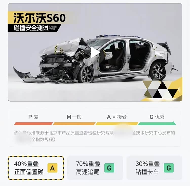 也正是在对于安全的极致追求下,沃尔沃S60才能在此前的某次30车大型安全碰撞测试中,做到了A柱结构纹丝不动,并在所有参测燃油车型高居第一位,用实际表现诠释了什么才是豪华安全标杆。