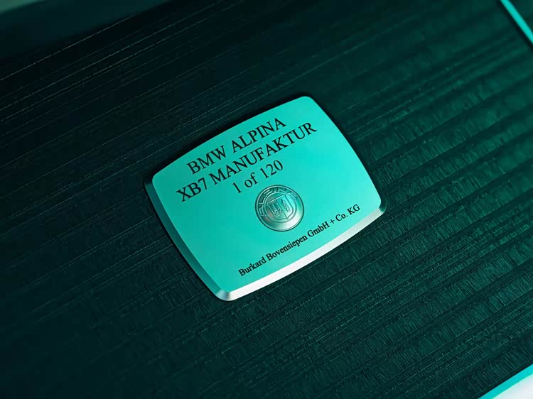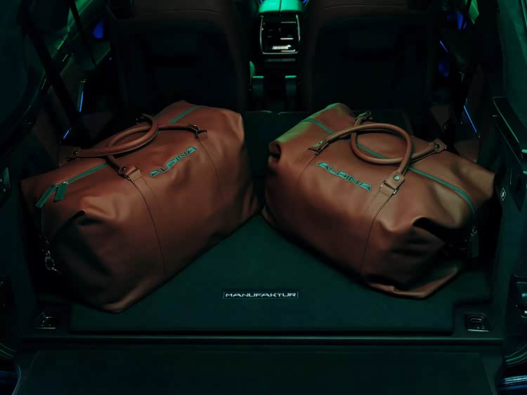 内饰方面并无官图公布,整体布局应该不会有变化,提供有三幅式多功能方向盘、曲面双联屏以及电子档把,在中控台、座椅、后备厢盖板上都有MANUFAKTUR或ALPINA标识,而且使用了Tartufo Merino真皮材质,凸显了档次感,第二排还配备有两个独立座椅,同时还附赠手工定制周末皮革包。