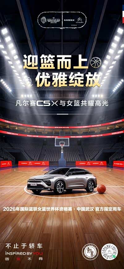 从富康时代的“第一撞”到如今的东风雪铁龙凡尔赛C5 X,东风雪铁龙始终与“拼搏、超越”的体育精神同频共振。此次牵手2026年女篮世界杯资格赛,不仅续写了支持体育事业的新篇章,更让“凡尔赛式”的舒适生活与体育竞技的魅力,在武汉这座英雄城市交相辉映。3 月 11 日,东风雪铁龙凡尔赛 C5 X 将与全球球迷一同见证女篮精英们在武汉赛场的热血竞逐,期待巾帼健儿们在赛场上的优雅绽放。