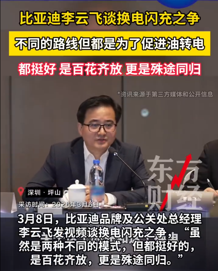 车家号·0浏览·2026-03-08 14:36 · 北京看了比亚迪对于换电与闪充模式的回应,确确实实,技术路径虽异,却各有所长、各适其用。二者并行发展,正是新能源行业百花齐放、生态繁荣的生动写照。