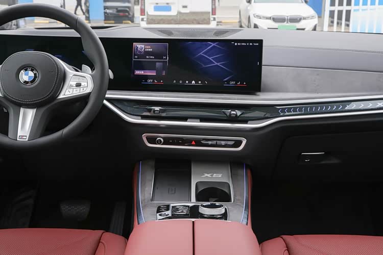 国产宝马X5的内饰则更有科技感一些,有点开始走国产新能源风格的感觉,大连屏、水晶档把,氛围感舒适更强一些。