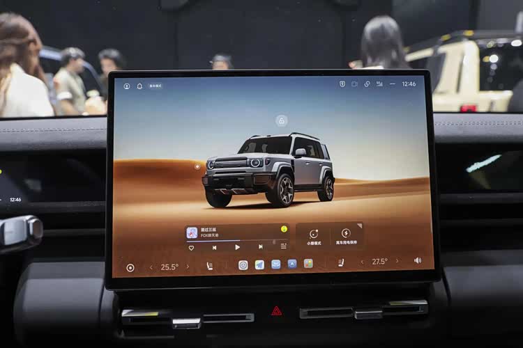 底盘方面iCAR V27采用前麦弗逊+后H臂多连杆独立悬架,并配备MRC磁霸悬架和i-AWD鬣蜥四驱系统,最小离地间隙220mm,最大涉水深度600mm,可以应付城市周边的轻度越野。