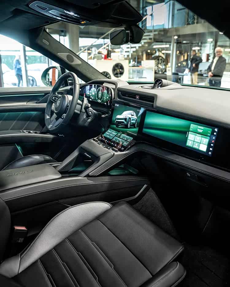车内采用了新的设计,极具科技感,配置有14.25英寸的液晶仪表,搭载12.25英寸的中控屏幕,还可以选装87英寸AR-HUD以及14.9英寸副驾娱乐屏,中控桥采用了倾斜的设计,内饰的设计比较惊艳,配置有全新研发的保时捷驾驶体验系统。