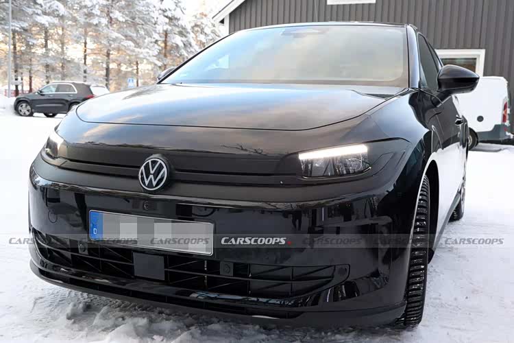 这两台小型电动两厢车在北欧雪地地区充电休整时被拍下。其中一台测试车配备我们此前见过的 19 英寸五辐合金轮毂,另一台则采用了更具设计感的全新样式。