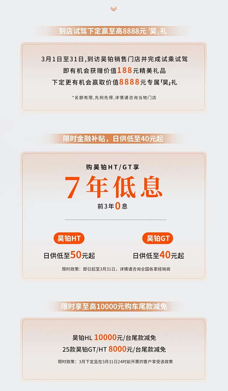 这个三月,广汽昊铂还准备了多重“昊”礼:到店试驾有机会获188元精美礼品,下定更可赢取至高8888元专属礼遇;还有3年0息金融补贴、至高10000元尾款减免及置换补贴,加上终身三电质保等“铂金服务”,让你把这份“被宠着”的感觉,从节日延续到日常的每一天。