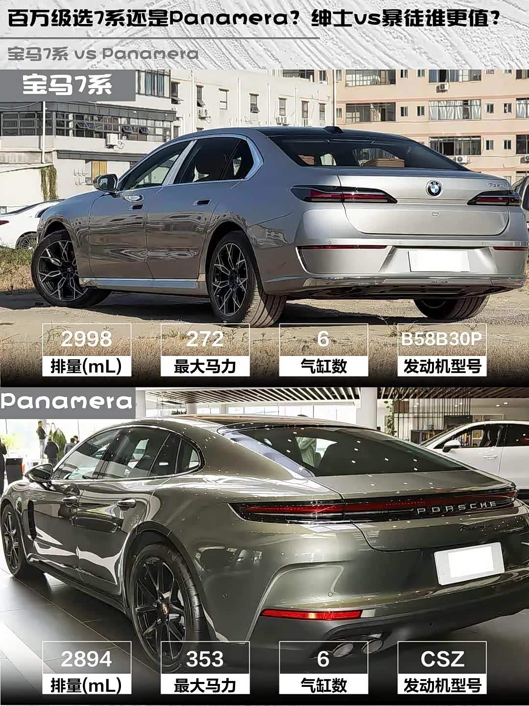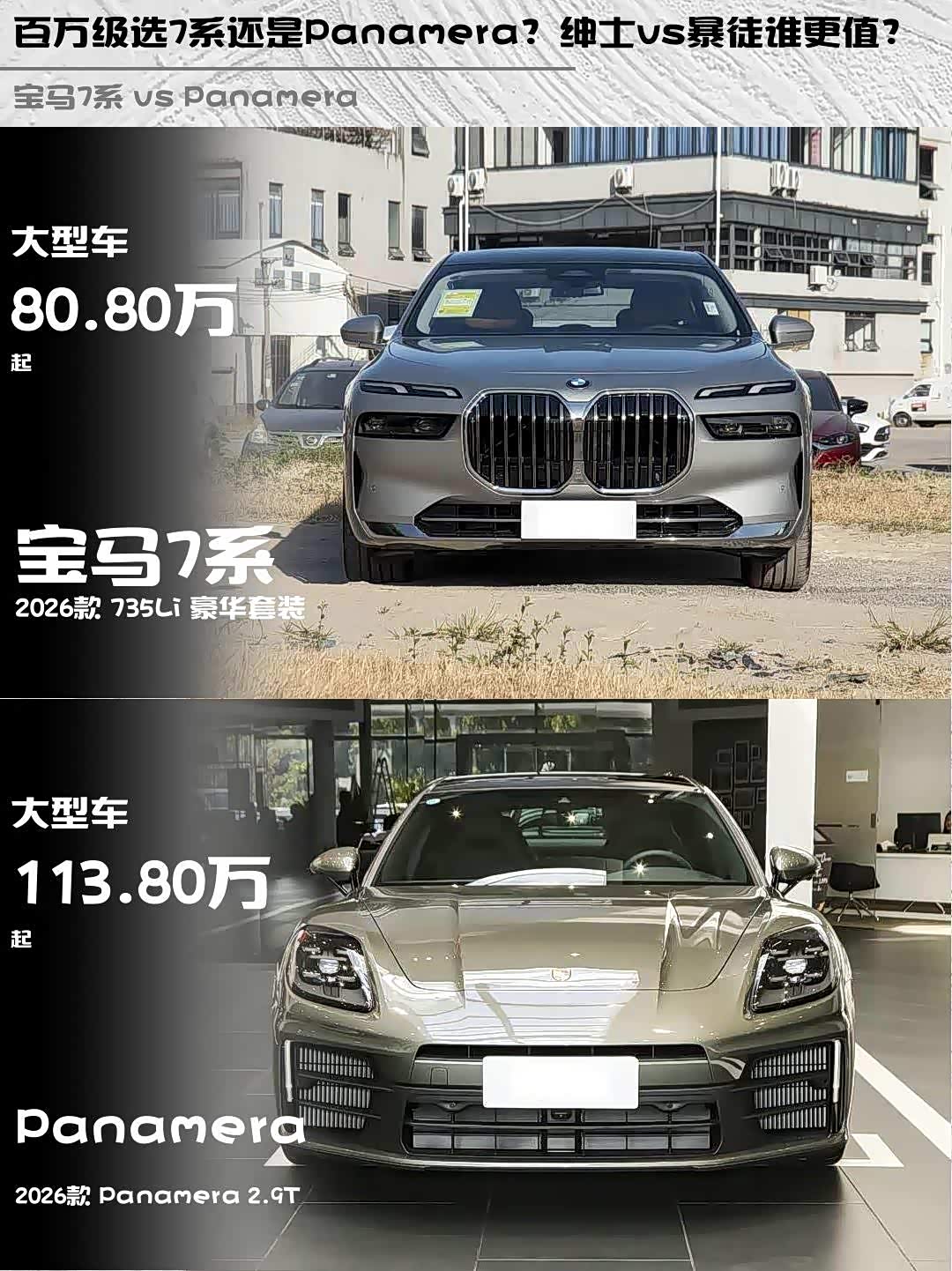 宝马7系(参数|询价) 2026款 735Li 豪华套装 vs Panamera 2026款 2.9T,百万级豪华轿车怎么选?🤔