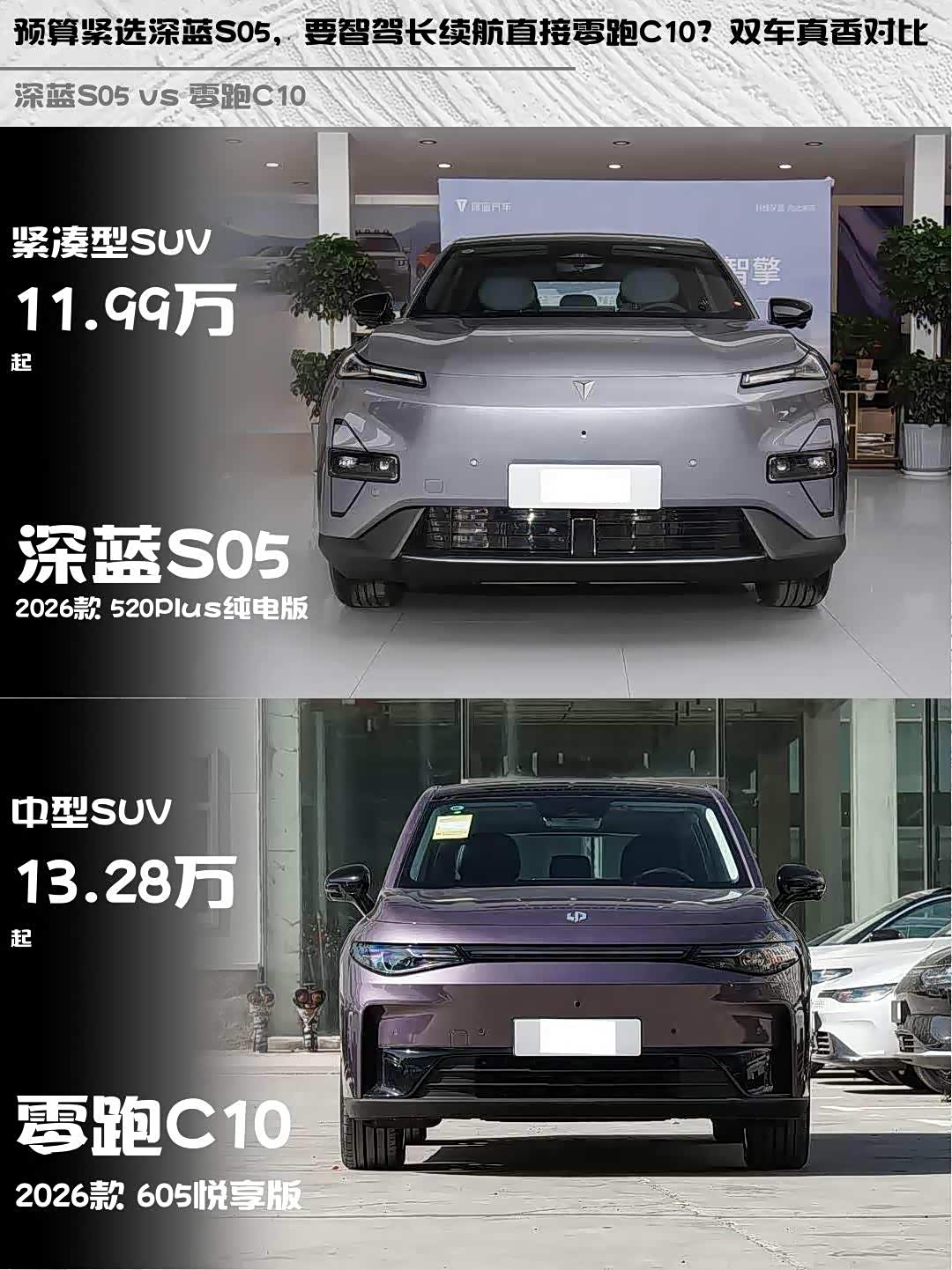 最近在选15万级纯电SUV的朋友看过来! 深蓝S05(参数|询价) 2026款 520Plus纯电版和零跑C10 2026款 605悦享版这两台车我都深度试驾过,从实际体验聊聊它们的差异点👇