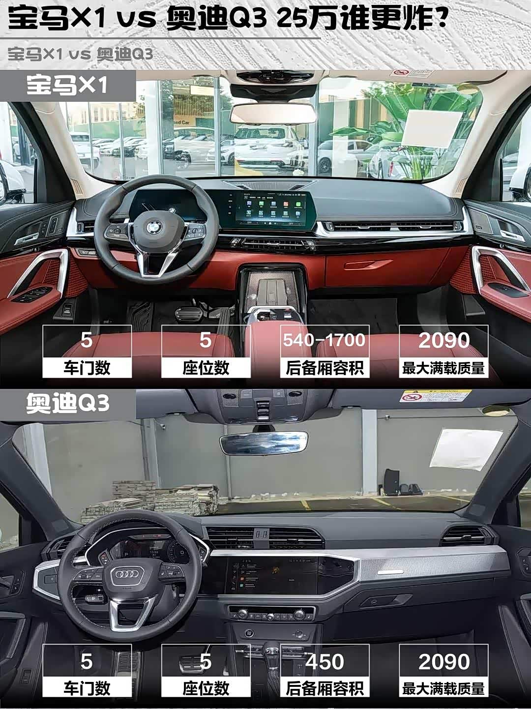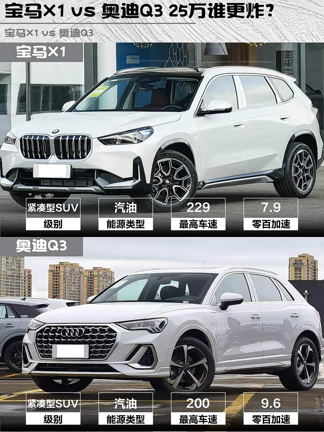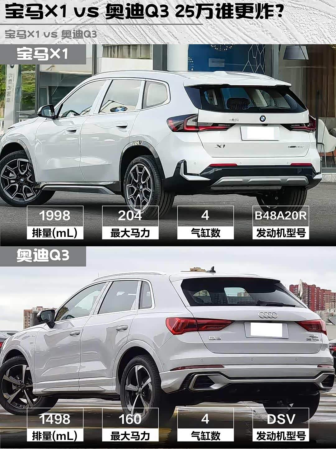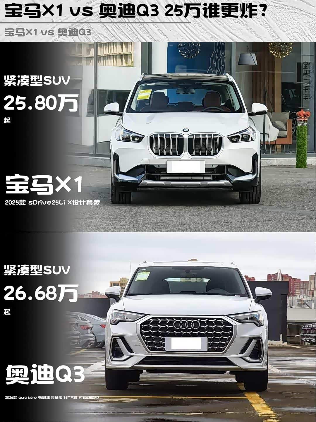 宝马X1(参数|询价) 2025款 sDrive25Li X设计套装 vs 奥迪Q3 2026款 quattro 45周年典藏版 35TFSI 时尚动感型,25万级豪华SUV怎么选?🤔