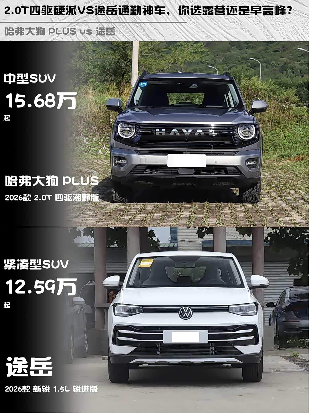 最近在纠结 哈弗大狗 PLUS(参数|询价) 2026款 2.0T 四驱潮野版和途岳 2026款 新锐 1.5L 锐进版的朋友看过来!这两台车我都深度试驾过,从硬核玩家到城市通勤党,给你们掰开揉碎讲清楚差异点👇