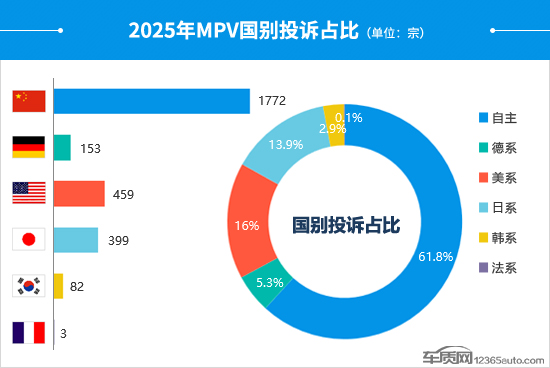 据车质网投诉数据显示,2025年MPV的投诉主体依旧是自主品牌,不过其投诉占比已经连续两年呈下降趋势。同期,合资品牌的投诉量涨幅较大,较2024年上涨24.4%,投诉占比也进一步回升,接近2022年水平。