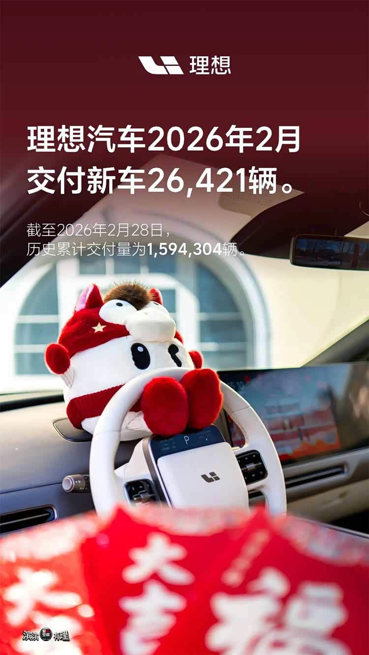 「 爱车空间 」理想汽车2026年2月交付26,421辆