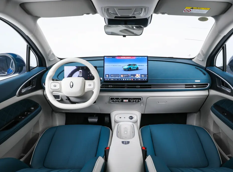 而且它内饰配色也有多种,你看这蓝白配色多时尚多浪漫。有绿米、有灰米、有灰棕、有蓝灰、有黑色,整体的撞色设计感就是不一样的。女孩子嘛要的很简单,个性复古中透露着浪漫,可以说这台好猫真的很难让人拒绝。那新款欧拉好猫跟老款车型的内饰设计也有改动,比如说中控这一块的布局设计是改变了,另外座椅也进行了一些调整。你看撞色座椅的设计加上打孔的工艺,设计细节是给到位的。14.6英寸大屏、手机无线充电、语音交互系统、远程控制、主动关怀模式等等。那主动关怀模式是最能讨人喜欢的,别的不说,情绪价值直接拉满。那这个功能是可以结合天气环境、车内温度,而且还会自动开启座椅通风加热、天窗自动开启、空调温度自动调节,这样的贴心程度岂不是比男朋友有过之而无不及?