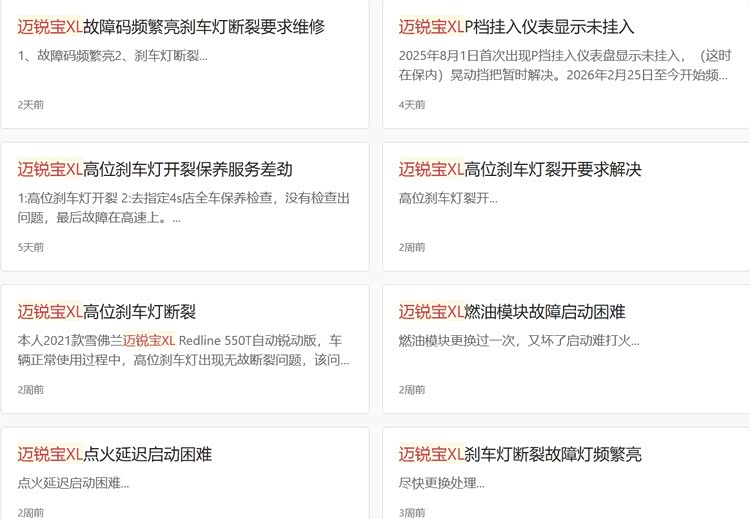 从车主们的反馈来看,高位刹车灯断裂频发的同时,迈锐宝XL还同时出现燃油泵模块故障。