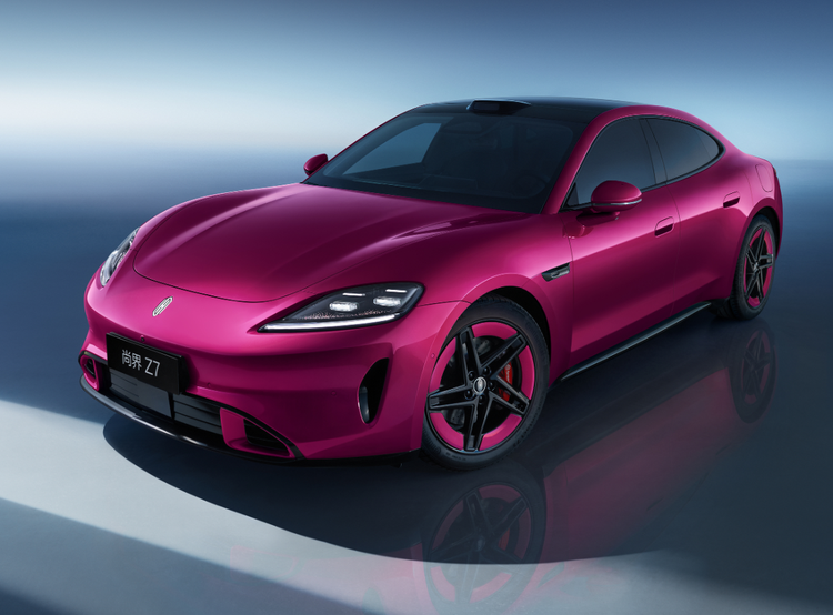 而关于尚界Z7T车型的消息现在只有这么多,接着就是关于尚界Z7车型的更多配置参数。比如两款全新配色分别叫做电光紫粉和琥珀金绿,听起来就非常个性炫酷,不过官方曾表示新车会有9种车色可选,充分满足年轻用户的个性审美之需。再者,尚界Z7的前脸会搭载主动式进气格栅、翼子板通风道等配置或设计来优化气流。但该吐槽也得吐槽,大灯组造型确实有些神似保时捷了,不过内部408个镭射发光点,采用分割式透镜光路架构,点亮之后璀璨星河般的效果确实没什么可吐槽。