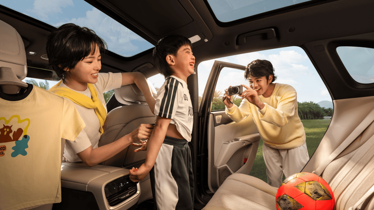 4850mm×1910mm×1676mm的宽绰车身,2850mm超长轴距带来阔绰座舱空间。身高1.2米的孩童可在二排站立,上下车无需低头弯腰。