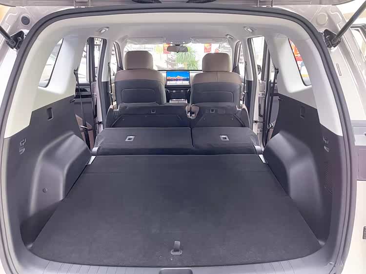 销售小哥还特意给我展示了几个“彩蛋”。比如,他把前排座椅的头枕取掉,靠背往后一放倒,直接就和我坐的后排座椅连成了一张“沙发床”。然后他又把后排坐垫往前一翻,靠背再放倒,后备箱瞬间变成了一个巨大的纯平空间,目测有两米多深,我躺进去试了试,完全能伸直腿。这要是周末带家人去郊游,铺个垫子就能在车里睡个午觉,或者拉个冰箱、自行车这种大件儿,也完全不在话下。
