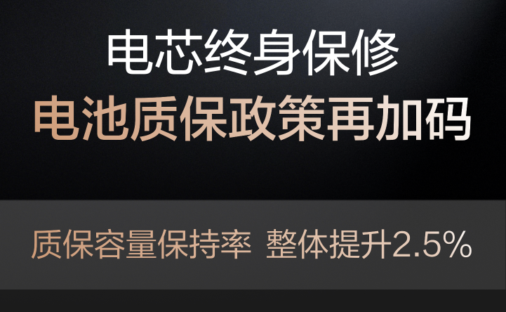 比亚迪宣布,第二代刀片电池的质保政策再加码,电池容量低于77.5%即免费包换,电芯依旧享受“终身保修”。这一承诺的背后,是比亚迪对第二代刀片电池寿命的充分自信。
