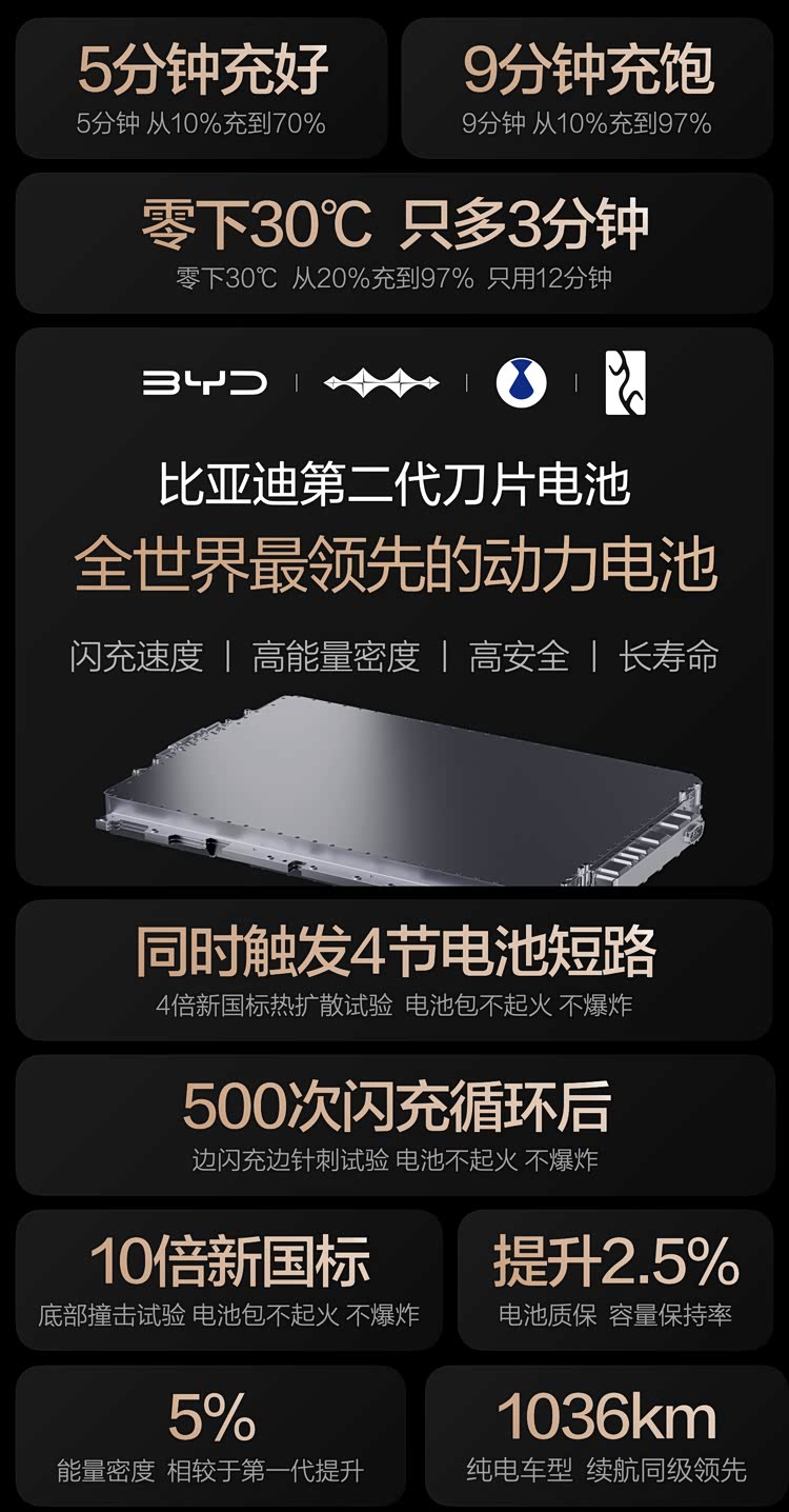 第二代刀片电池,不只是快,更是耐用与安全的全面升级,重新定义全球动力电池新标准。