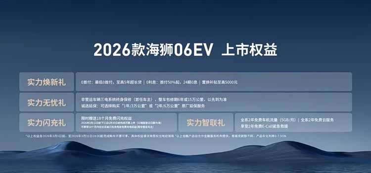 而在这个新赛道上,2026款 海狮06(参数|询价)EV算是走在前端的引领者,加上新车配置、技术多所升级,对比下来,新价格还是蛮香的,你说是吗?