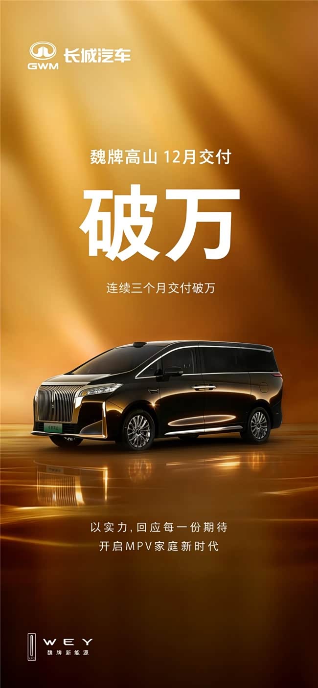 车家号·0浏览·2026-03-09 15:11 · 江西2025 年收官之时,魏牌高山交出了一份令人瞩目的成绩单:12 月蝉联 MPV 单月销量冠军,更将 2025 年 7-12 月半年销量总冠军收入囊中,“双冠” 加身的荣耀实至名归。这一成绩不仅延续了其连续三月销量破万的强劲势头,更标志着魏牌高山从 MPV 市场的 “黑马” 蜕变为引领结构性变革的 “领头羊”。