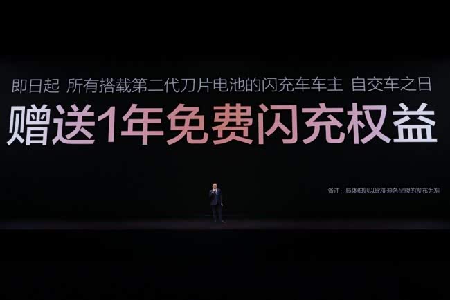 发布会现场,王传福还宣布:所有搭载第二代刀片电池的闪充车车主,均享有重磅“闪充权益”,自交车之日起,在全国闪充站可享受1年的免费闪充权益,让闪充体验更畅快。并且,在闪充免费期结束后,也会同行业保持一致,不会额外收费。仰望、腾势和方程豹新车型搭载第二代刀片电池及闪充技术。
