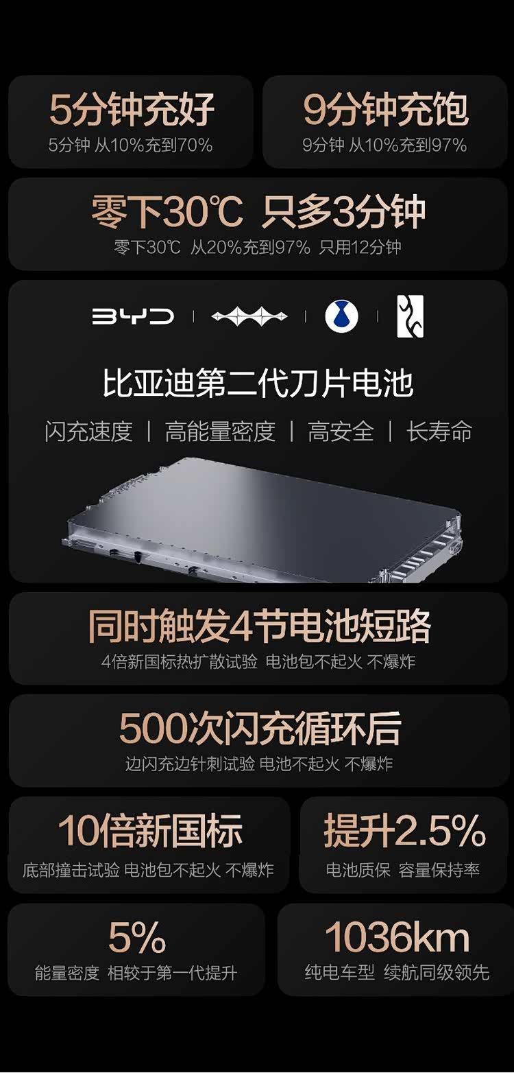 说实话,这确实是大家最关心的事。行业里一直有个共识——大功率快充容易伤电池,因为短时间内产生的热量多,电芯扛不住就会加速老化。比亚迪这次倒没有回避这个问题,发布会直接把“闪充不影响寿命”当成重点来讲。