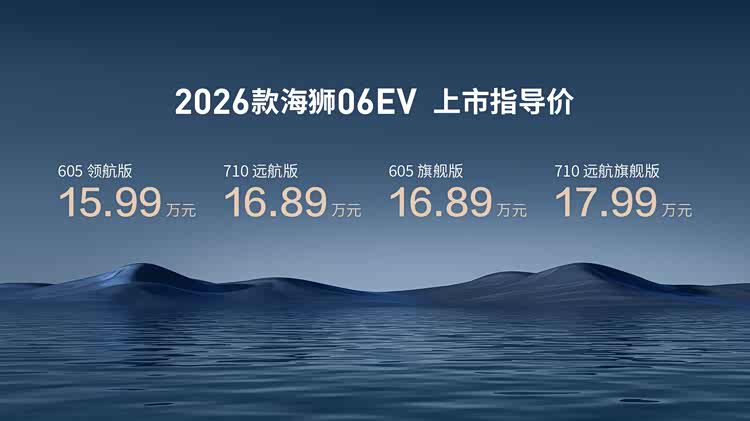 近日,比亚迪2026款海狮06EV上市,续航有605公里和710公里两种,4款车型售价区间为15.99万-17.89万元。除纯电版之外,海狮06插混版在售,售价区间为13万-16万元。