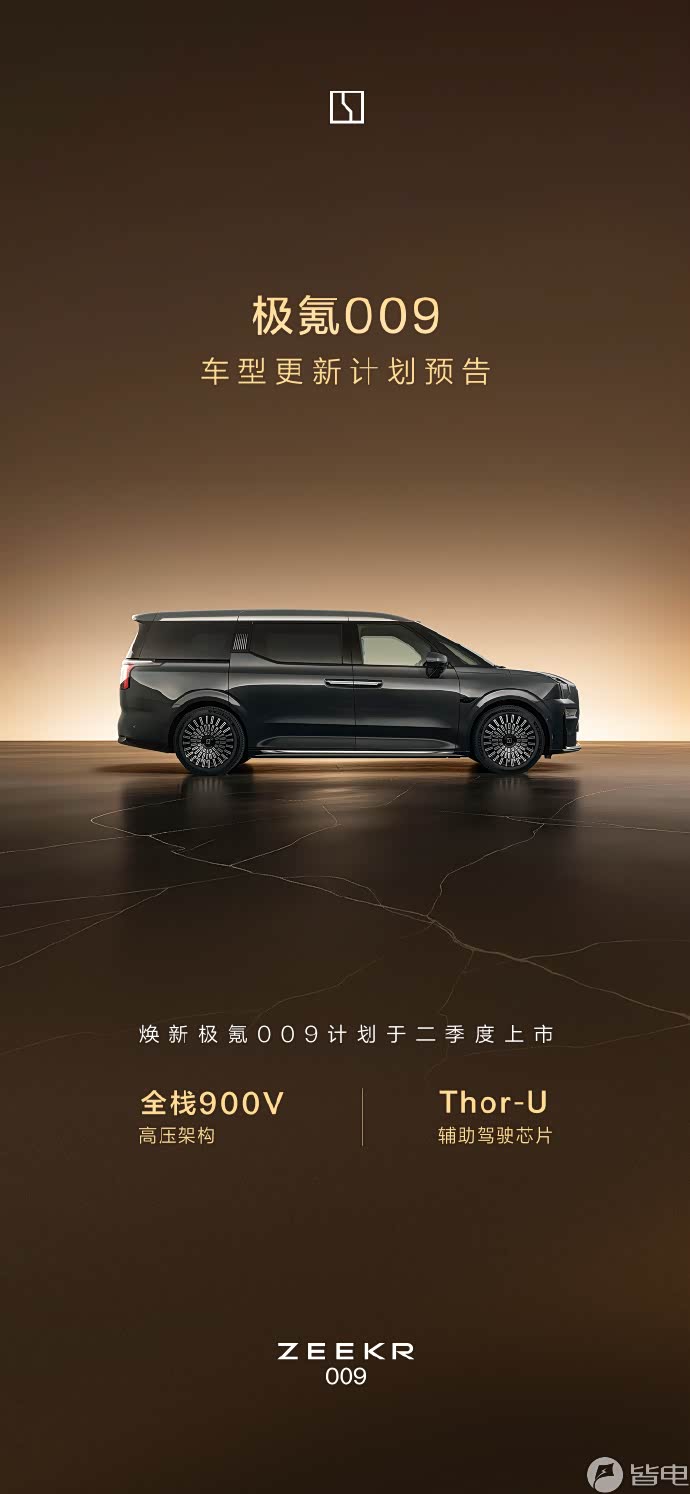新款极氪009将于二季度上市!全栈900V高压架构+Thor-U芯片