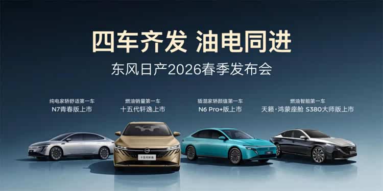 2026年春节刚过,日产汽车在中国便又带来了十五代轩逸、天籁·鸿蒙座舱S380大师版、N6 180 Pro+版、N7青春版四款新车,也进一步让自身的产品矩阵切入到有更细分产品需求的用户圈层。