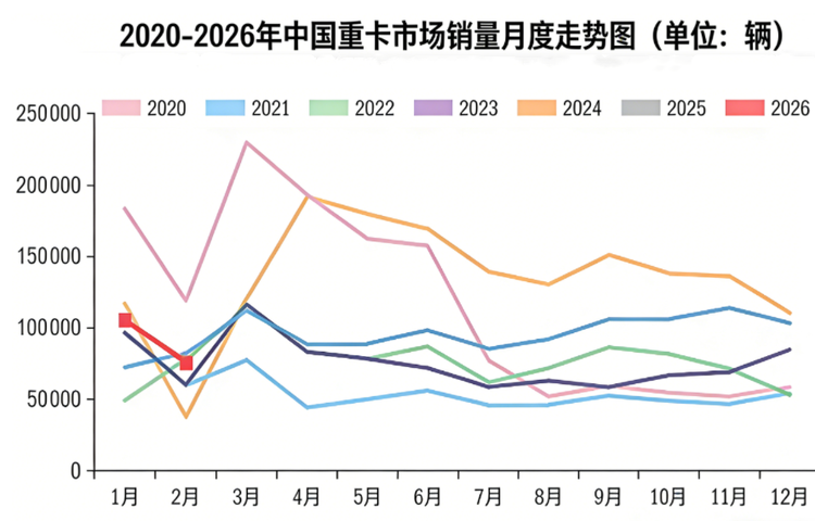 2月重卡市场迎来春节季节性淡季——同比微降8%。