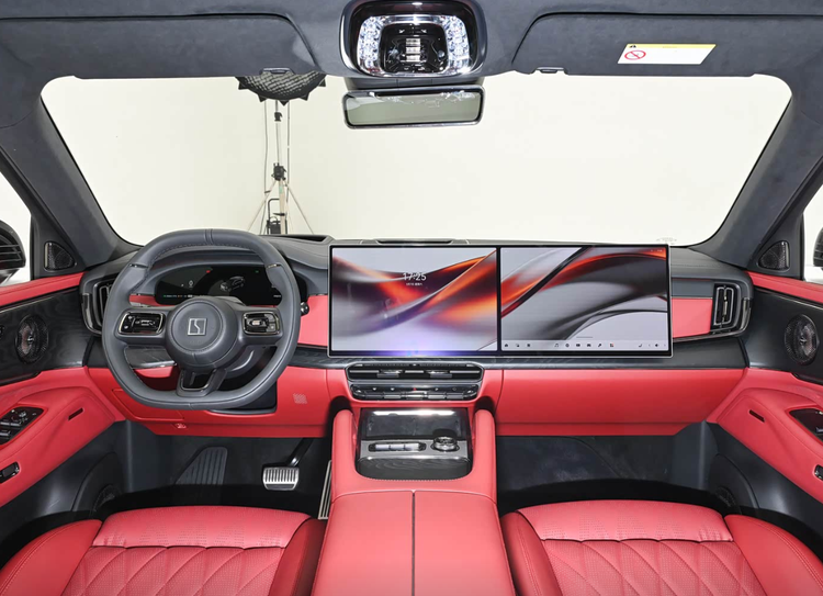 动力则是2.0T插混系统,发动机最大功率为205kW,三电机兆瓦电驱综合功率高达1030kW,预计0-100km/h加速时间2秒级,性能相当夸张。