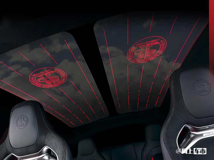 最后说头顶这块全景天幕,支持分区调光,还有AMG发光徽章和赛车条纹,隔热防晒,氛围感到位了。