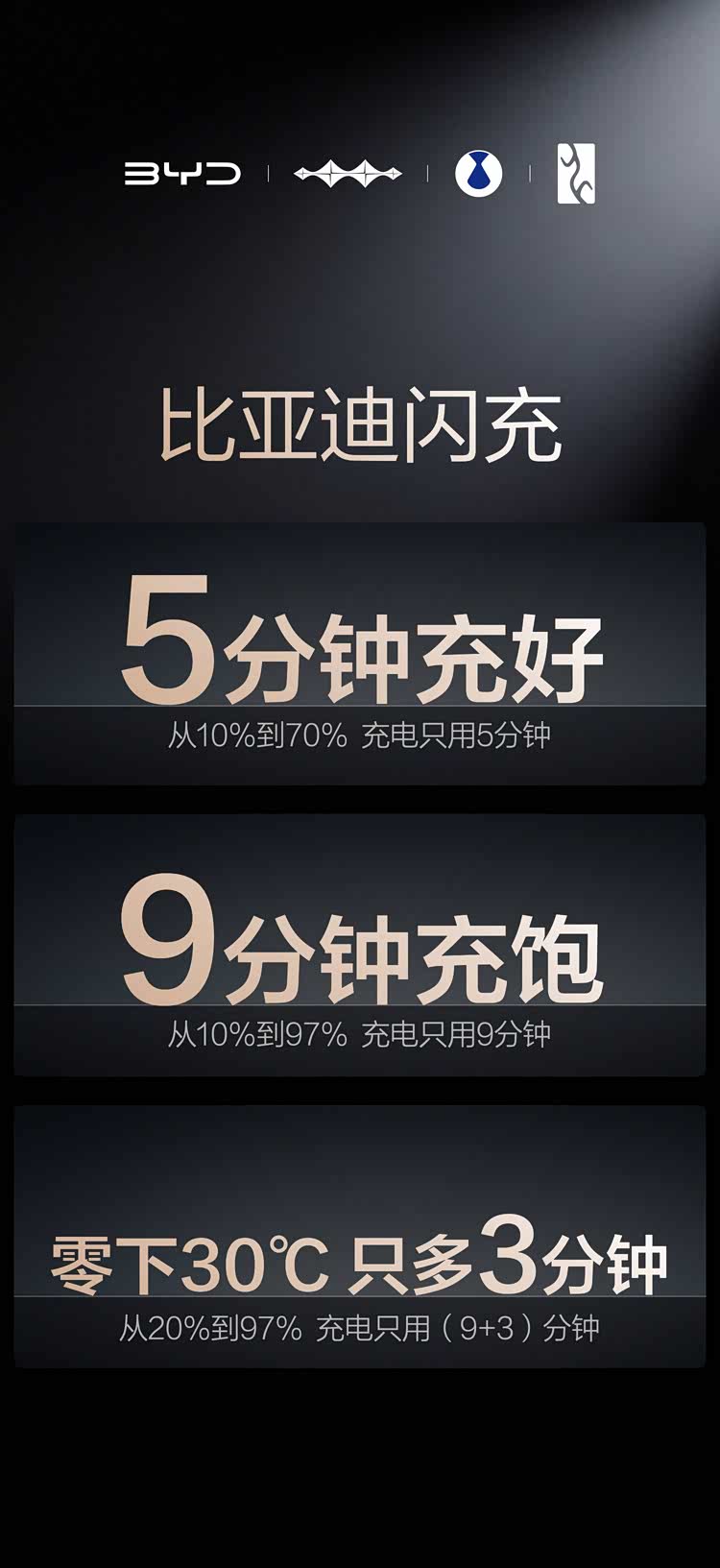 低温充电难,是新能源出行在北方地区的一大掣肘,也是行业技术攻坚的重点方向。比亚迪第二代刀片电池在这一维度同样交出了亮眼答卷,实现常温充电5分钟充好、9分钟充饱,零下30度低温环境下,仅比常温多3分钟的闪充表现。这一成绩,让动力电池的充电效率不再受地域、季节温度的限制,极大拓宽了新能源汽车的使用场景,为新能源出行的全国性普及扫清了重要障碍,也让这一硬核闪充技术的实用价值得到了最大化体现,真正担起了行业新标杆的称号。