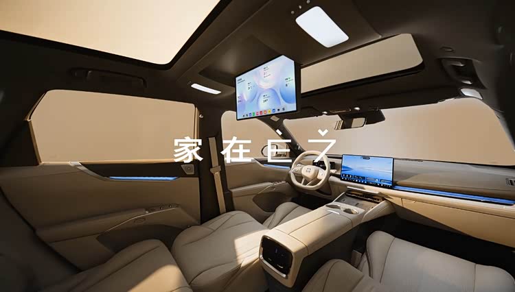 至境E7延续了至境家族“水生美学”设计理念,以山水为灵感,营造出灵动轻盈的座舱氛围。新车采用大五座布局,配备云感悬浮层座椅(带加热、通风、按摩功能)、伊姆斯零重力躺椅、二排椅背电动调节、二排多功能桌板、银离子保鲜冷暖箱、15.6英寸莱茵认证智慧中控屏、256色智能交互氛围灯、20扬声器环绕音响等配置。