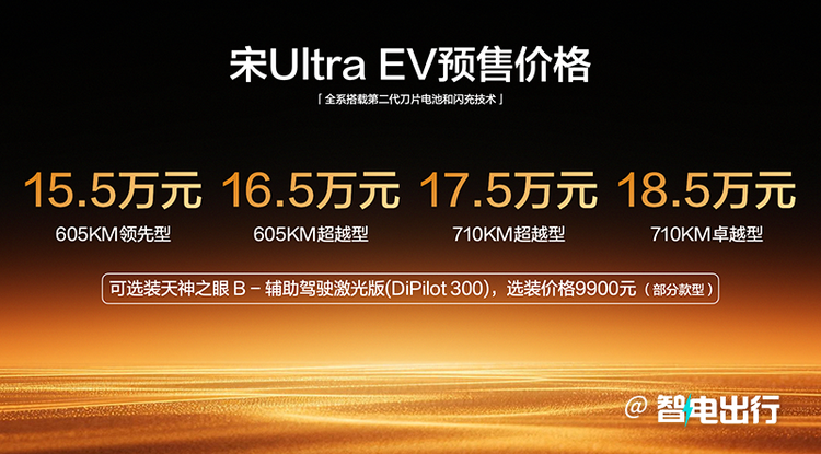 而且比亚迪怎么能忘了“智驾平权”的天神之眼呢?C咱就不说了,宋Ultra可以通过选装激光雷达的方式解锁天神之眼B(额外选装激光雷达9900元)。