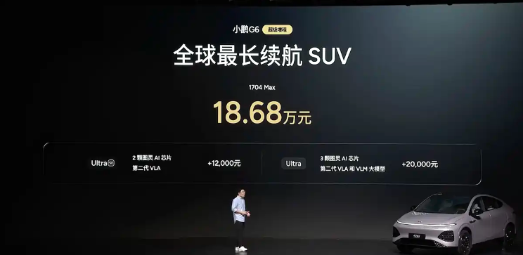 自从 小鹏G6(参数|询价)推出后,便凭借可观的空间和过硬的产品力,在家用市场获得了不错的开局。3月6日,小鹏汽车正式推出了G6超级增程版,新车仅推出了1704 Max版一款车型,官方指导价为18.68万,不过用户可以通过选装智能升级包,升级为Ultra SE版和Ultra版,作为G6车系的新增动力版本,这款车型在保持原有设计语言的基础上,引入了增程动力系统,在20万元级别的SUV市场中为消费者提供了新选择。