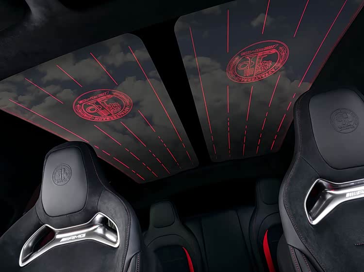 新车标配隔热全景玻璃天窗,可选装SKY CONTROL电控调光全景天窗。该天窗可分段调节透光度,夜间可启用特殊背光模式,在玻璃表面投射AMG徽标及赛道条纹图案。用户也可选装无开孔碳纤维材质封闭式车顶。