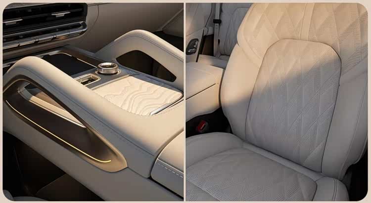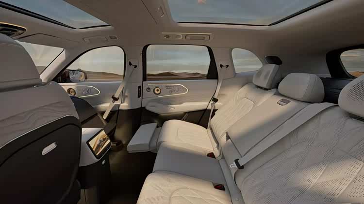 配置更是直接拉满,宾利同款的Naim音响、同级最大的9.5L冷暖冰箱,还有那个17英寸的OLED吸顶屏,配合座椅和氛围灯能实现5D观影效果。以前这些配置,基本是百万级豪车的专属,现在极氪8X一股脑全给你装上。尤其是后排,空间本来就号称同级最宽敞,再加上独立的小桌板、控制屏,无论是办公还是追剧,体验感确实到位。