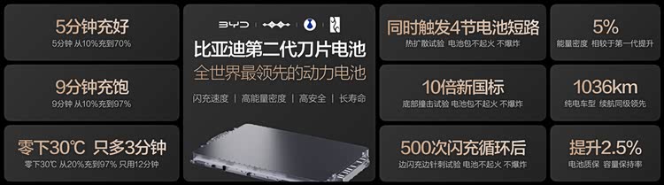 2026年3月5日,比亚迪在深圳大运中心体育馆召开“闪充中国 改变世界”发布会。正式发布:第二代刀片电池及闪充技术!这其中,第二代刀片电池实现了前所未有的充电速度。其在常温环境下,从10%充至70%仅需5分钟,充至97%仅需9分钟;即使在零下30℃的极寒条件下,充电时间仅比常温多3分钟。这一成就得益于比亚迪独创的“锂离子高速通道”和“全温域智能热管理系统”,在提升充电效率的同时,确保了电池能量密度较第一代提升5%以上。