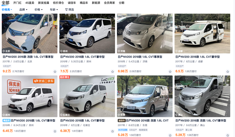 当然这也导致NV200的保值率稳定得惊人,参考国内二手价格,新车价格普遍在4-6万元区间有交易,重点是这价格还不是年份和公里数特别美丽的情况,年份较新、公里数较少的车甚至能去到9万的价格区间,要知道当年配置较高的新车价格也不过为12-13万左右,这保值率是挺吓人的。