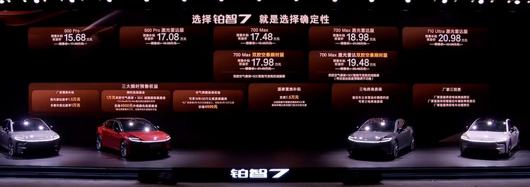 铂智7共推出5款配置,预售权益价15.68万-20.98万元。