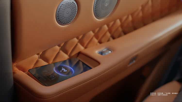 作为核心舒适区,第二排配备零重力座椅+电动腿托、吸顶娱乐屏、后排小桌板,车门把手处增设手机无线充电;官方信息显示,第三排同样搭载座椅按摩功能,全舱舒适性拉满。座椅、门板等处均以菱形缝线点缀,精致感统一。