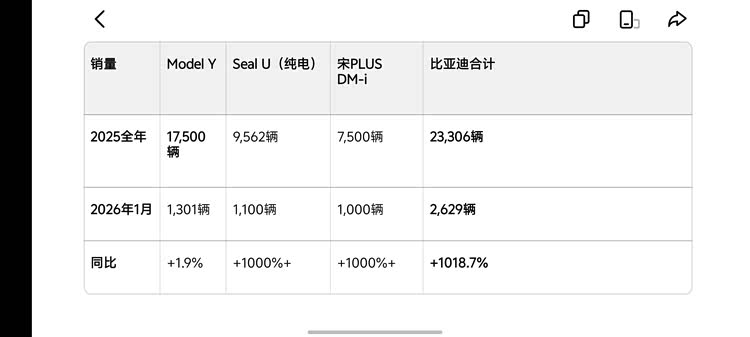 在国内26万起步的Model Y,在德国竟然和比亚迪宋卖一个价位——都是4万欧。更魔幻的是,2026年1月宋的销量还是Model Y的1.5倍。