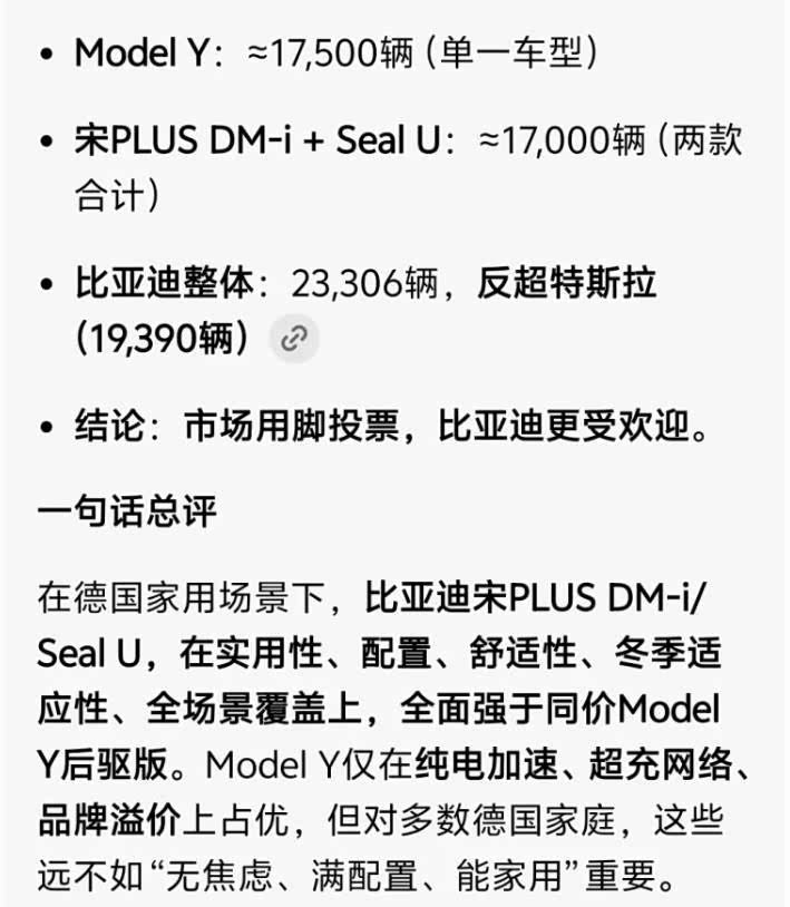关键是市场在变。当比亚迪在德国老家都能把特斯拉按着打,说明国产车的产品力已经起来了。过去"国产=低端"的认知,正在被快速击碎。