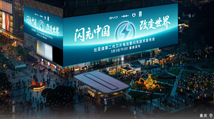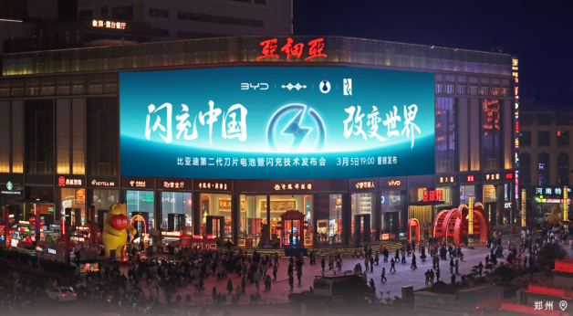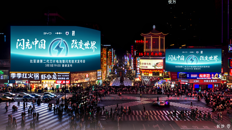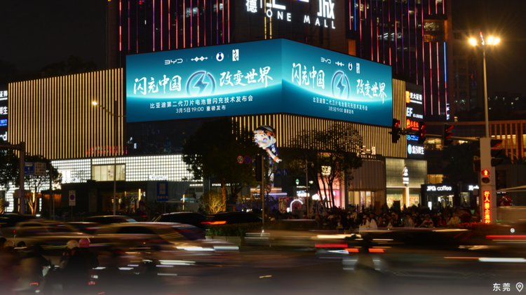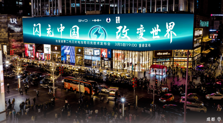 在人潮涌动的十字路口,在灯火璀璨的商业综合体,每一块大屏都成为一个技术科普的窗口,让“第二代刀片电池”与“闪充技术”从专业术语,变成了市民抬头可见、街头热议的公共话题。