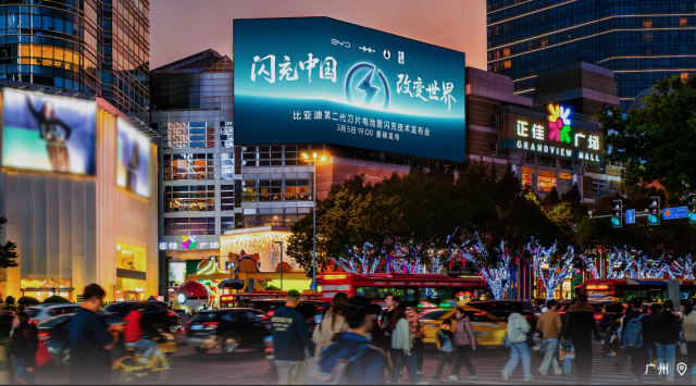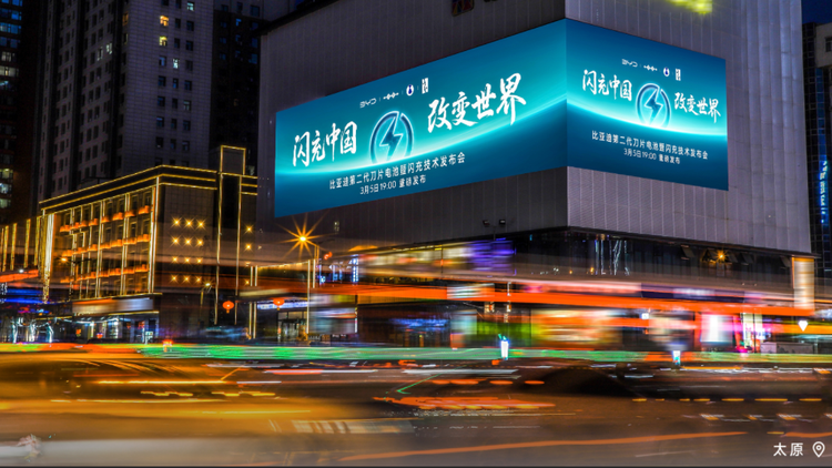 当城市霓虹与科技之光在巨幕上交融,比亚迪用一场现象级的户外广告战役,宣告了其在电池与快充领域的技术领导力。
