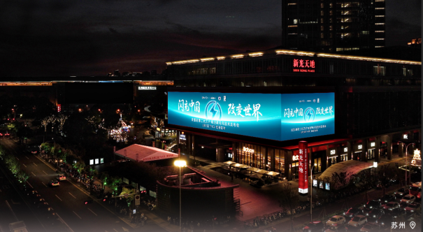 当夜色笼罩城市,苏州新光天地、成都春熙路、东莞德汇城、郑州亚细亚、太原亲贤街、重庆龙湖北城天街、广州正佳广场、深圳COCO Park、长沙黄兴路步行街…… 全国九大核心商圈的户外巨幕,同步亮起同一片科技蓝。
